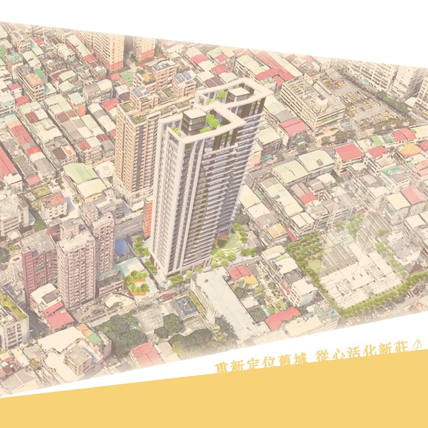 - 以「千帆林立」、「帆航波紋」設計,綜合新莊港及領航都更的意涵。